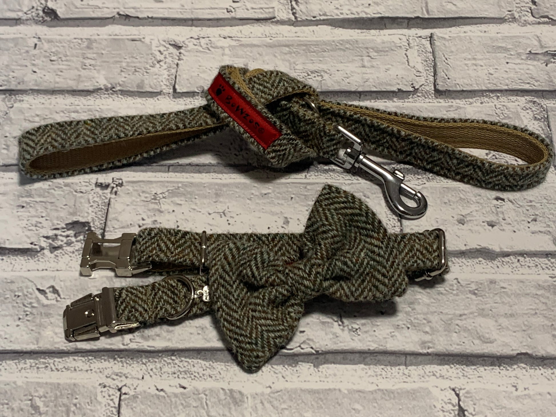 Dog Collar & Lead set. Handmade in Edinburgh with thought, love and attention to detail. Made from Harris Tweed fabric and backed with strong yet soft webbing to give you the unique style you love with the durability your dog needs.