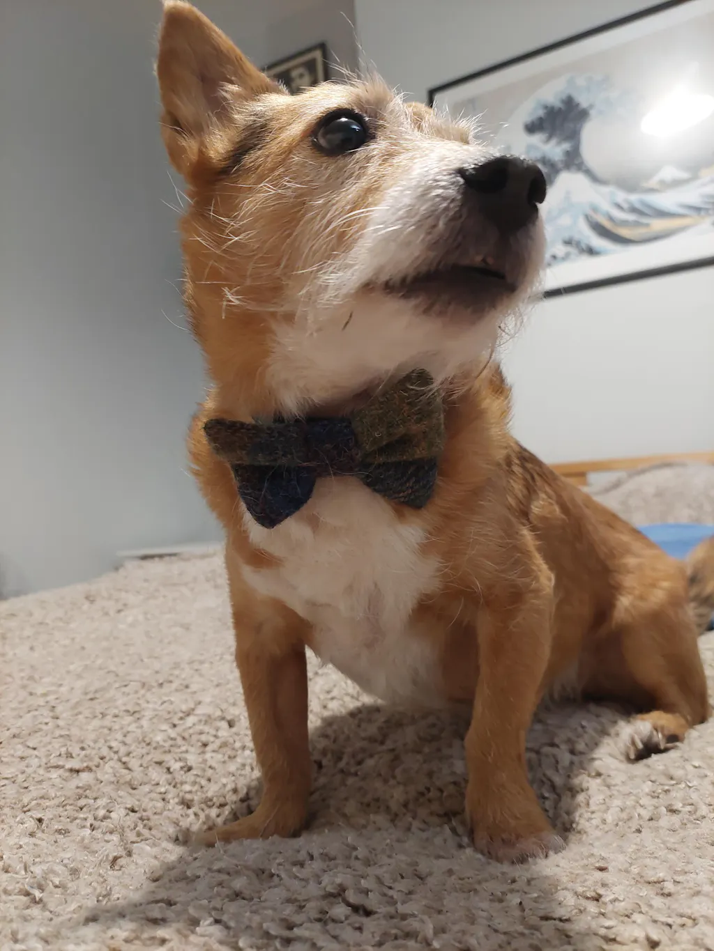 Harris Tweed bow. Elastic loop at back to attach to any collar. Handmade in Edinburgh with thought, love and attention to detail.