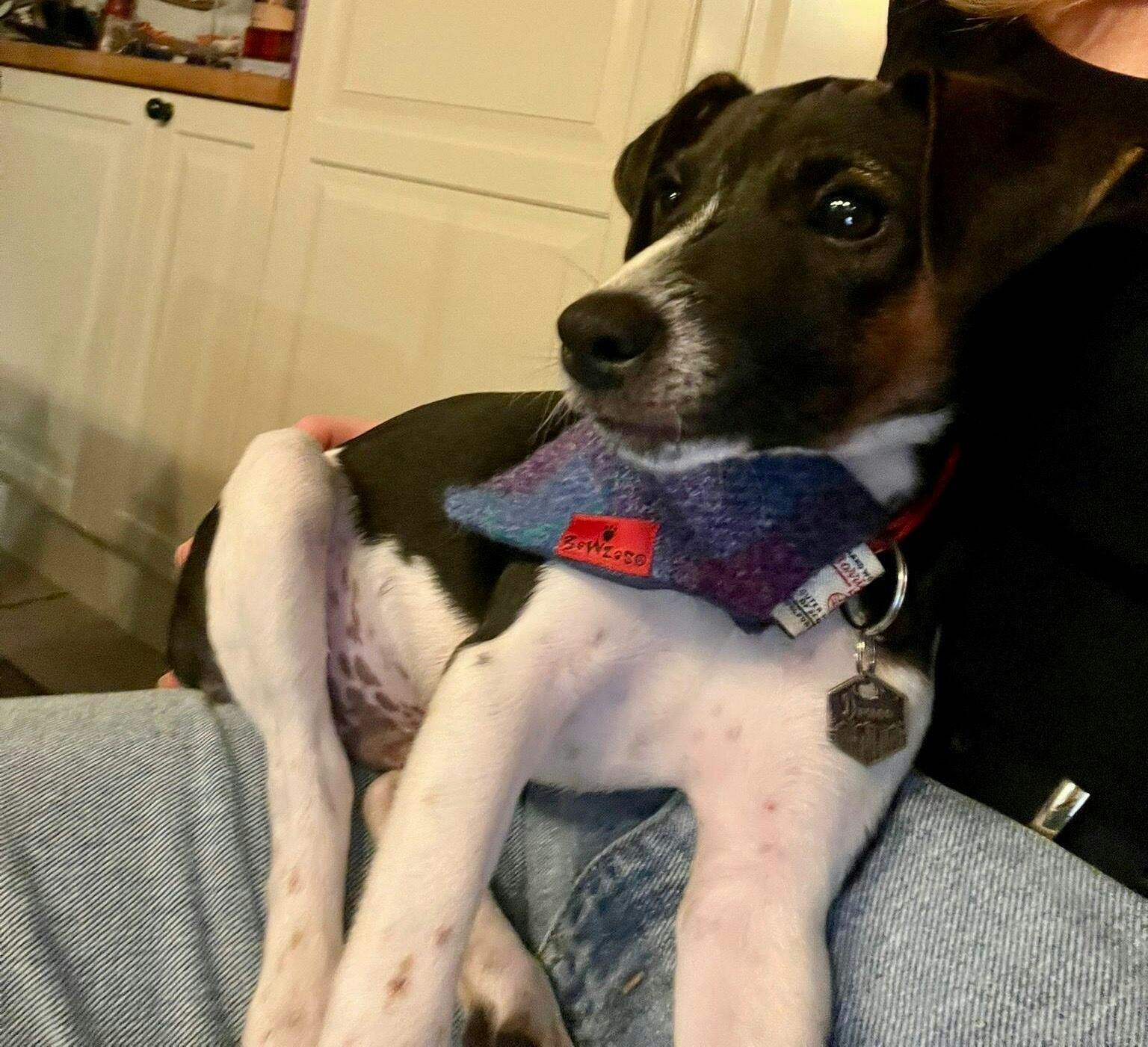Harris Tweed Bandana to slide on to any dog collar. Handmade in Edinburgh with thought, love and attention to detail.